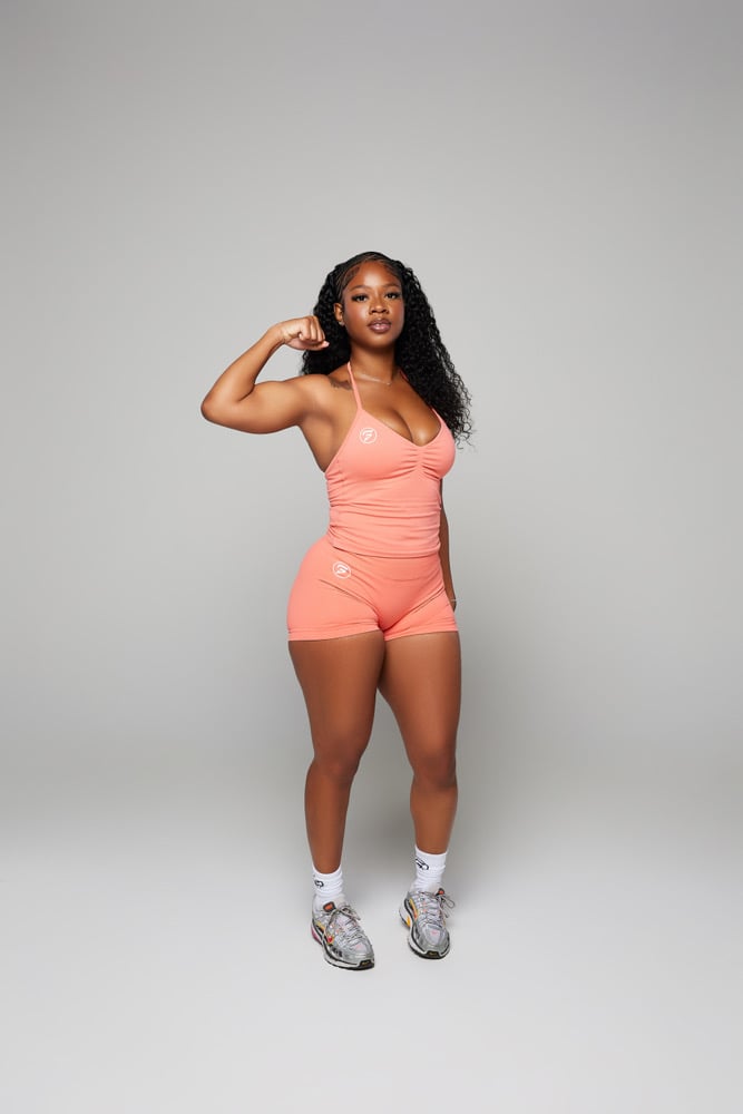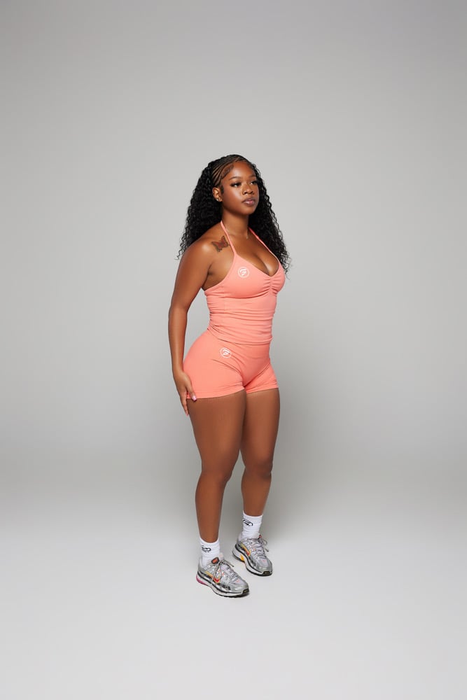 Seamless halter top and shorts set with a flattering fit, breathable fabric, and all-day comfort—perfect for workouts or casual wear.
