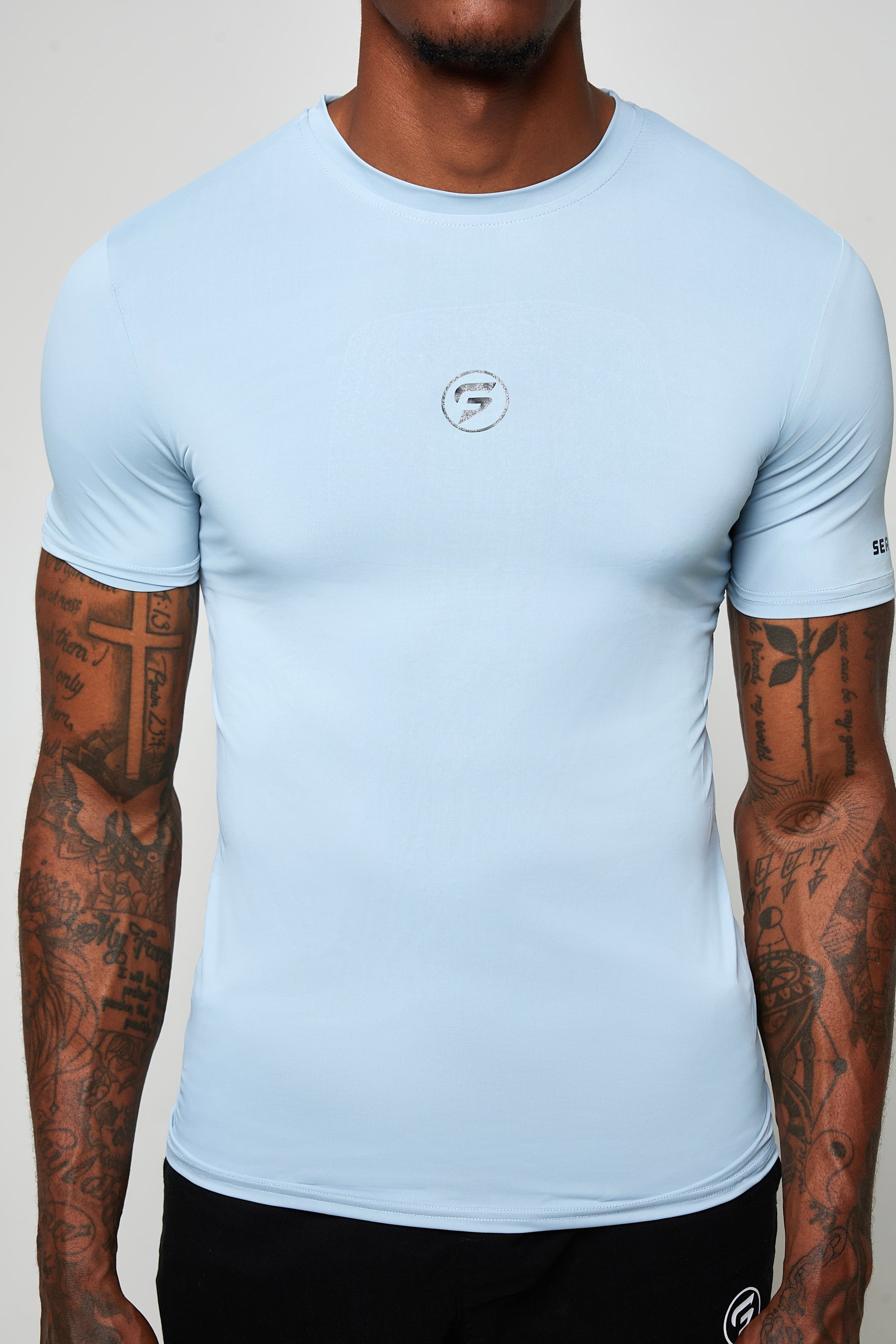 Fitted compression tee designed to sculpt your physique while keeping you cool and dry through any workout.